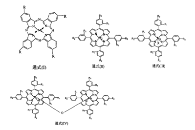 1. used to prepare o-nitrobenzaldehyde. using o-nitrotoluene as the raw material, metal phthalocyanines with the general formula (i) structure, mononuclear metalloporphyrins with the general formulas (ii) and (iii) or μ-oxygen binuclear metalloporphyrins with the general formula (iv) structure are selected. any one of the phosphine as a catalyst, in the formula, m1, m2, m3, m4, m5 are transition metal atoms, m1=fe, co, cu, zn, m2=fe, mn, co, cu, zn, m3= fe, mn, co, m4 and m5 can be the same or different. when they are the same, m4=m5=fe, mn, co. when they are different, m4=fe, m5=mn or m4=fe, m5=co, r can it can be carboxyl or hydrogen, r1 and r2 can be hydrogen, halogen, nitro, hydroxyl, alkoxy, the ligand as a solvent, in a 3.0-6.0 mol/l strong alkaline methanol solution, add 0.8-3.0 mpa oxygen, control the reaction temperature to 25-60°c, and the reaction time to 6-48 hours to obtain crude o-nitrobenzaldehyde. after separation and purification using conventional methods, o-nitrobenzaldehyde fine product is obtained. the structures of general formulas (i), (ii), (iii) and (iv) are as follows: