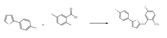method 1: using 2-(4-fluorophenyl)thiophene as raw material, prepare 2-(4-fluorophenyl)-5-[(5-iodo-2-methylphenyl)methyl]thiophene , the reaction equation is as follows: