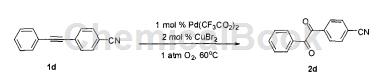 more specifically: put palladium trifluoroacetate (0.01mmol, 3.3mg), copper bromide (0.02mmol, 4.4mg), compound 1d (1.0mmol, 207mg), and tetrahydrofuran (1.0ml) into the reaction bottle in sequence. and water (1.0 ml). the system was connected to an oxygen bag, and then evacuated cyclically and replaced with oxygen three times. the system was then heated in an oil bath at 60°c for about 24 hours to obtain a crude product; it was cooled to room temperature and extracted with ethyl acetate (4.0 ml × 3). , the oxidation product 2d can be obtained through simple column chromatography, with a yield of 86%.