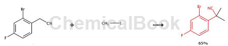 sodium hydride (1 g, 42.1 mmol) was added to a stirred solution of 2-bromo-4-fluorobenzene acetonitrile (3 g, 14 mmol) in 10 ml dimethylformamide (dmf) at 0°c. the mixture was left at 0°c to room temperature for half an hour. methyl iodide (6g, 42mmol) was added. stir for another 30 minutes. quench the reaction with water. extract products into dcm. the organic phase was dried over sodium sulfate and concentrated to give an oily residue. the residue was purified by flash column chromatography (fcc) (hexanes to 20% ethyl acetate in hexane, gradient elution) to give the title compound as a white solid (2.2 g, 65%). 1h nmr (400mhz, cdcl3) δ7.41-7.47 (m, 2h), 7.03- 7.08 (m, 1h), 1.88 (s, 6h).