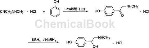 some research provides a preparation method that uses methylaminoacetonitrile hydrochloride as raw material, reacts with phenol and hcl under the catalysis of lewis acid to generate 2-methylamino-1-(4-hydroxyphenyl). ethyl ketone hydrochloride is then reduced by sodium borohydride or potassium borohydride to obtain 2-methylamino-1-(4-hydroxyphenyl)ethanol hydrochloride. the product purity can reach more than 99%, the total yield is 67.5%, the process is simple to operate, and it is easy to realize large-scale production.