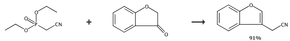 mix sodium hydride (268 mg, 6.7 mmol) in anhydrous thf (10 ml) under a nitrogen atmosphere at 0°c to make a slurry, and then add diethyl cyanomethyl phosphate (1.1 ml, 6.7 mmol) dropwise. , and then stir the entire system for 45 minutes. then 3-coumaranone (lancaster) (900 mg, 6.7 mmol) was added dropwise, and the entire system was stirred at room temperature for 45 minutes. the reaction was diluted with etoac (15 ml) and water (15 ml), then the organic layer was separated, dried (mgso4) and evaporated, and the residue was subjected to pentane using 0-5% etoac flash chromatography of the solution gave the title product (940 mg, 91%); 1hnmr (400mhz, cdcl 3), δ: 3.77 (s, 2h), 7.25 -7.40 (m, 2h), 7.52 (dd, 1h), 7.58 (dd, 1h), 7.67 (s, 1h); lrms: m+nh4+, 175. (ts+).