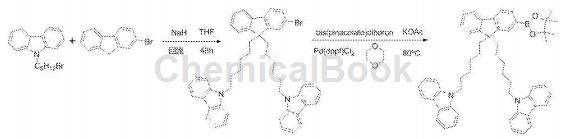 dissolve 2-bromo-9,9-(n-carbazole-hexyl)fluorene, pinacol diborate and anhydrous potassium acetate in dioxane, and add the catalyst pd(dppf )cl2, the reaction system was refluxed and stirred at 80°c for 48 hours. after the reaction was completed, it was cooled to room temperature, an appropriate amount of water was added, extracted with dichloromethane, the organic phases were combined, and the extract was concentrated. chromatographic separation (eluent is petroleum ether: dichloromethane 3.5:1) to obtain a white solid 2-(4,4,5,5-tetramethyl-1,3,2dioxaborane).�)-9,9-(n-carbazole-hexyl)fluorene.