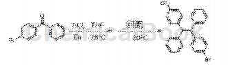 place 4-bromo-benzophenone, zn powder, and dry tetrahydrofuran in a double-necked round-bottomed flask. degas after the temperature is constant in a low-temperature reactor at -78°c. add ticl4 dropwise into the round-bottomed flask. in the bottom flask, stir for 20 minutes, remove the low-temperature reactor, and continue stirring at room temperature for 30 minutes. then move to an 80°c oil bath and reflux and stir for 24 hours. after the reaction is completed, cool to room temperature, and add a small amount of water to quench the reaction. extract with dichloromethane, concentrate the extract, and separate by column chromatography (eluent: petroleum ether: dichloromethane 6:1) to obtain a white solid 1,2-bis(4-bromophenyl)-1,2 -diphenylethylene.
