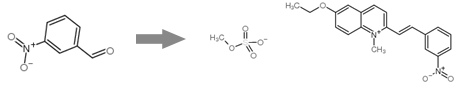 use m-nitrobenzaldehyde as raw material to synthesize 6-ethoxy-1-methyl-2-(3-nitrostyryl)quinoline methyl sulfate salt. the reaction equation is as follows: