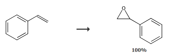 put 104 kilograms of styrene into a 1000l enamel kettle at one time, add 50 grams of ferrous sulfate; start stirring, raise the temperature to 75°c and start adding dropwise 120 kilograms of 30% hydrogen peroxide solution, sodium bromide solution and sulfuric acid solution; the three materials are added simultaneously within 10 hours. during the dripping process, the temperature is controlled at 65-80°c. after the dripping is completed, the reaction continues for 10 hours. the temperature is controlled at 75-80°c. stop stirring and take samples. the reaction is deemed to be qualified. at the end point, let stand, separate the oil layer, cool the water layer to -15°c, precipitate 315 kg of glauber’s salt crystals, filter out the solid, and use the mother liquor to prepare various solutions required for bromoalcoholization. put bromophenyl alcohol into the saponification kettle at one time; start stirring, control the temperature to 50°c, and start adding liquid caustic soda dropwise; complete the addition in 8 hours, and then continue the reaction for 8 hours, and control the temperature at 45 to 55°c; after the reaction is completed, wait leave it for half an hour. if the test is qualified, it is the end of the reaction; release the recovered sodium bromide solution in the lower layer, and put the material liquid into the finished product tank. after testing the content of the sodium bromide solution, add new sodium bromide to adjust the concentration to 29.4%, and continue used in bromoalcoholization reactions. the yield of styrene oxide is 75.7%.