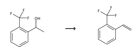 add potassium dihydrogen phosphate (19g) and 3-trifluoromethylphenylethyl alcohol (190g) into the reaction bottle. then heat to 100°c and stir for 12 hours. after distillation under reduced pressure, o-trifluoromethylstyrene (65-66°c/41mmhg) was obtained as a colorless liquid with a yield of 90% and a purity of 99.0% (gc).