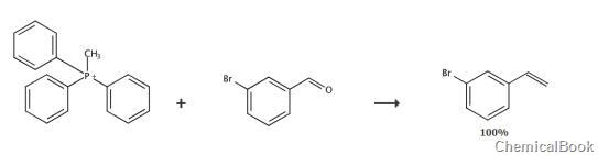 dissolve 3-bromobenzaldehyde (10g, 54.05mmol) in 102ml dioxane and water (v/v=50:1) mixed solvent, add potassium carbonate (18.64g, 135mmol) and methyl trisulfide phenylphosphonium iodide (43.70g, 108.11mmol) was heated to 100°c and stirred for 12 hours. filtration, the filter cake was washed with 200 ml n-hexane and ethyl acetate (v/v=50:1) mixed solvent, the filtrate was concentrated under reduced pressure, and the resulting residue was purified by silica gel column chromatography to obtain the title product 3-bromostyrene (10g , yellow liquid), yield: 100.0%.