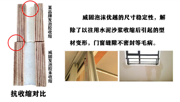 what is shrinkage? styrofoam shrinkage means that the beaten styrofoam will shrink after curing. so what hidden dangers will styrofoam shrinkage bring to doors and wins? generally, some low-priced and low-quality foam rubber products on the market will shrink. the shrinkage of foam rubber will cause problems such as weak doors and wins, deformation, etc. it will also lead to problems such as reduced sound insulation, water leakage in doors and wins, and unsealed gaps in doors and wins. therefore, the shrinkage of foam glue brings huge hidden dangers to the houses we live in every day. we must choose high-quality foam glue to use.