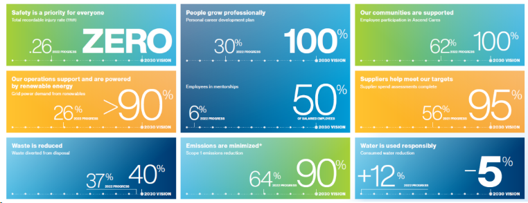 compromise) are the three pillars of ascend’s sustainable development strategy, and we always implement the sustainable development strategy in every aspect. we are committed to reducing our carbon footprint and recently announced the progress we have made towards the nine goals of the 2030 sustainable development vision, including a 90% reduction in greenhouse gas scope 1 emissions, a 40% waste conversion rate in production operations, and two projects in achievements in reducing product carbon footprint.