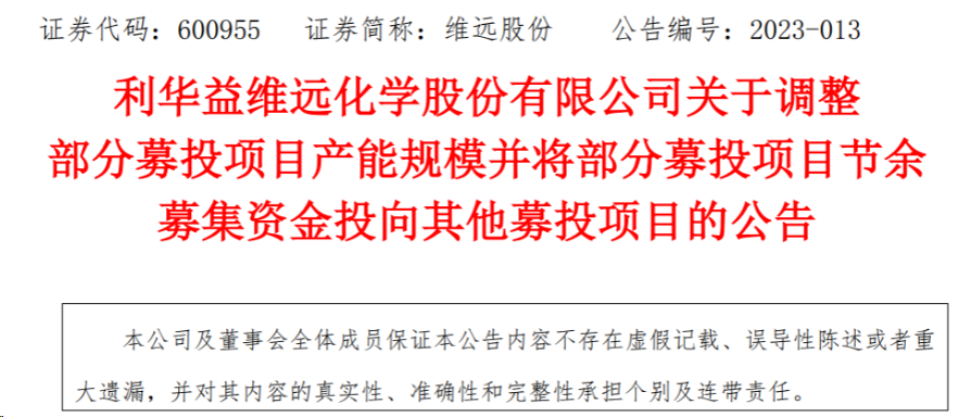 on march 1 this year, weiyuan shares issued an “announcement on adjusting the production capacity scale of some fundraising projects and investing the remaining funds raised in some fundraising projects into other fundraising projects.”