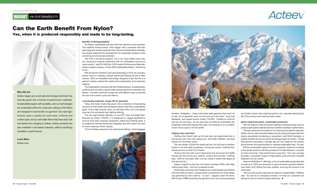 as a textile brand, acteev® focuses on pioneering innovations in polyamide fibers and fabrics and is committed to helping customers achieve their sustainability goals without sacrificing product performance. in the latest issue of “textile