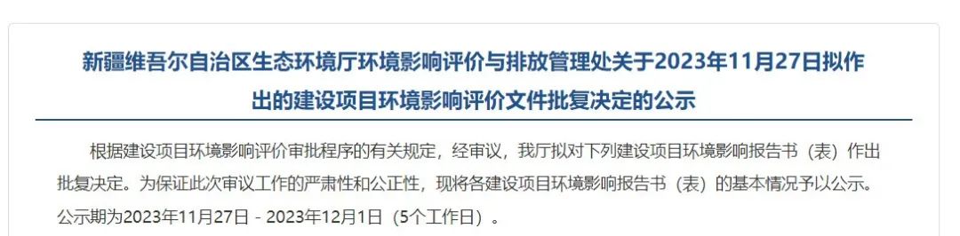 on november 27, the department of ecology and environment of the xinjiang uygur autonomous region plans to make a decision on the environmental impact report of the 200,000 tons/year natural gas production bdo project of xinjiang baicheng longyu new materials co., ltd.
