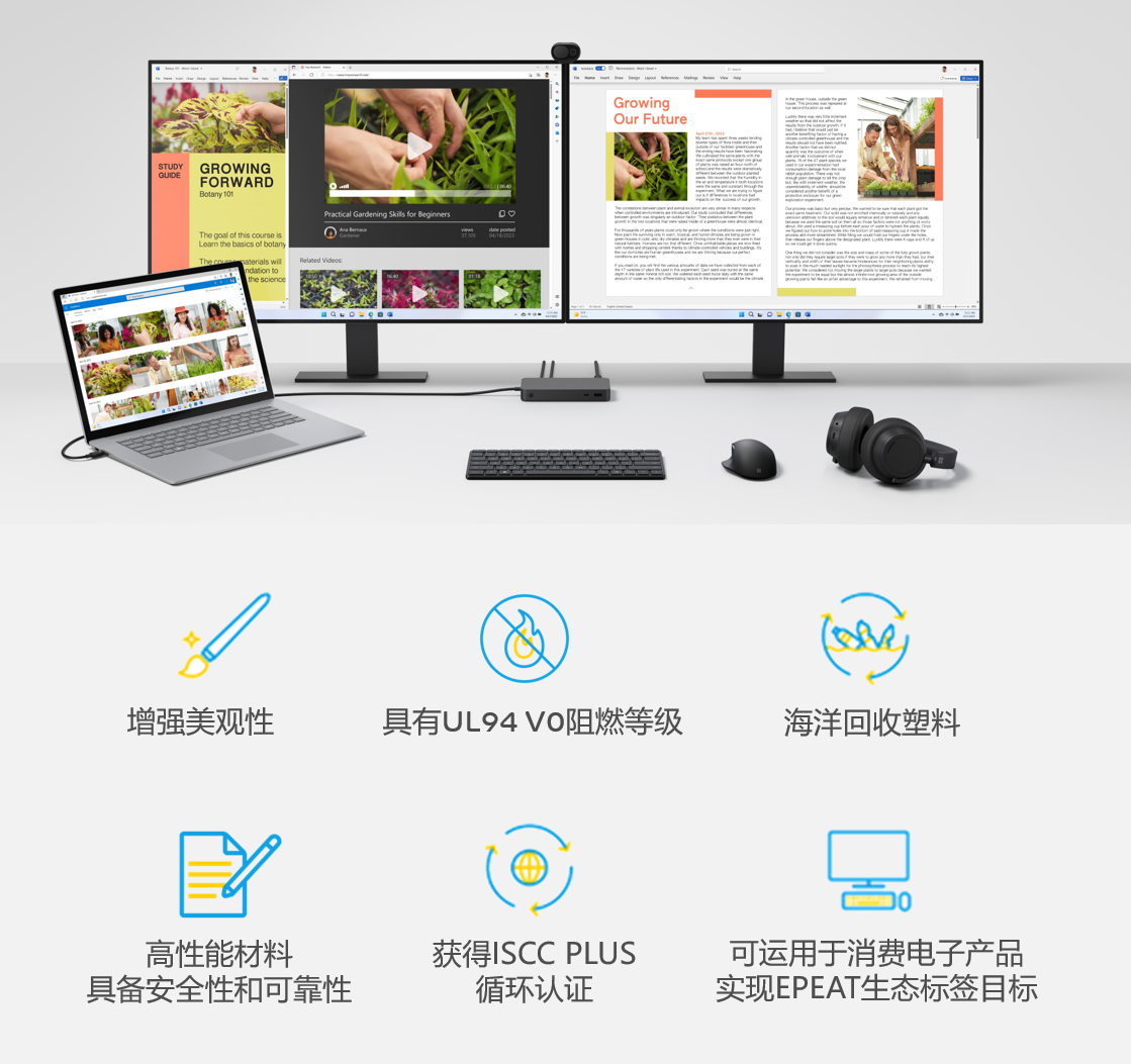 plastics (obp for short) cooperation in the field has been further expanded. following the successful cooperation between the two parties in 2021 to develop the first consumer electronics product made of recycled ocean plastic – the microsoft ocean plastic mouse, sabic and microsoft recently jointly launched the first surface series connection device made of ocean recycled plastic (obp) and power supply housing, containing 20% ocean-recycled plastic.