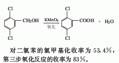 4. benzoyl chloride method is obtained by chlorination and hydrolysis of benzoyl chloride. the chlorination temperature of benzoyl chloride is controlled between 35-45°c. the main component of the chloride obtained is 2,5-dichlorobenzoyl chloride (content 65%). then, in the presence of concentrated sulfuric acid, it is chlorinated at 40-45°c. hydrolyzed at 50℃.
