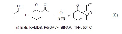 active ions catalyzed by palladium reagents in the allylation reaction between methyl compounds and inactive allyl alcohol, triethylboron can play a very good role in promoting the c-o bond of allyl alcohol (formula 6)[5].