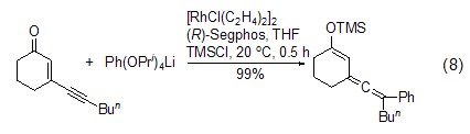 formation of silyl vinyl accumulated dienes under the action of transition metal catalysts, alkenes and alkynes can couple with tmscl to generate accumulated dienes, which can be further oxidized to α, β -unsaturated ketone (formula 8)[17].