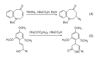 introduce other nucleophilic groups at the γ-position of enone or enol for example, use tbsn3, t-buco2h and et3n react with enone to introduce an azide group at the γ position (formula 4, formula 5)[6,7].