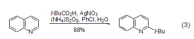 strong> silver peroxydisulfate catalyzes the decarboxylation reaction of carboxylic acids to produce alkyl radicals, which can be used for the alkylation of aromatic bases. in this process, pivalic acid can serve as a tert-butyl donor, and 2-tert-butylquinoline is regioselectively synthesized through this method (formula 3)[4].