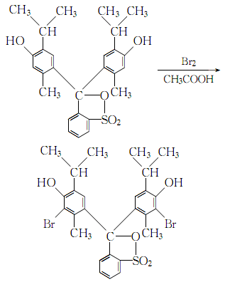 2.slowly add excess bromine-glacial acetic acid solution to thymol blue aqueous acetic acid solution under stirring, at 40~ react for 4 hours at 50°cafter the reaction is completed, cool to below 20°c, filter and dry to obtain colorless bromothymol blue.