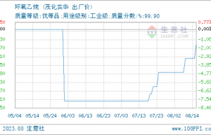 on july 29, the price of ethylene oxide in sailpan, jiangsu was flat, and the external implementation was 6,550 yuan/ton. compared with the same period last month, the chain fell by 13.25%, and fell by 9.03% year-on-year.
