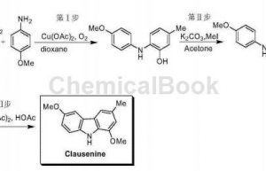 overview p-methoxyaniline is an important organic raw material that can be used to prepare a variety of pharmaceutical intermediates. apply[1-4] 1. clausenine is a carbazole natural product with antibacterial activity. cn201410027161 reports a copper-catalyzed reaction of 6-diazo-3-methyl-2-cyclohexen-1-one and p-methoxyaniline to generate 2-(4-methoxyphenylamino)-5- toluene; then through methylation and palladium-catalyzed c-c bond coupling, the natural product clausenine…