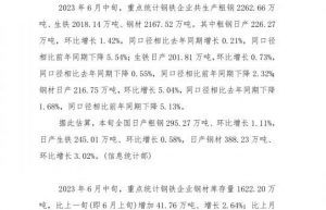 in mid-june 2023 focus on statistics on the production and storage of iron and steel enterprises