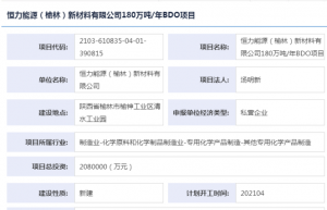 recently, the public information of shaanxi government service network shows that hengli energy (yulin) new material co., ltd.’s 1.8 million tons/year bdo project has been reviewed and approved. project name: hengli energy (yulin) new material co., ltd. 1.8 million tons/year bdo project construction location: qingshui industrial park, yushen industrial zone, yulin city, shaanxi province total…